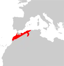 Comprende el Magreb, la subespecie presente en Marruecos es la nominal. El bulán se halla presente en Melilla.