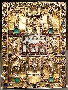 En 1499 se realizó una magnífica encuadernación en oro para el manuscrito que, además de numerosas piedras preciosas, contiene un camafeo de águila romana con una representación de la familia de Constantino I como gema decorativa central.