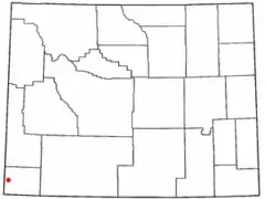 - Esta obra contiene una traducción derivada de «Evanston, Wyoming» de Wikipedia en inglés, publicada por sus editores bajo la Licencia de documentación libre de GNU y la Licencia Creative Commons Atribución-CompartirIgual 4.0 Internacional.