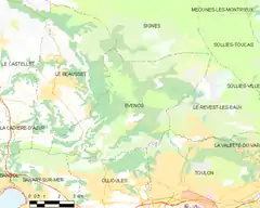 Évenos es una población y comuna francesa, que se encuentra en la región de Provenza-Alpes-Costa Azul, departamento de Var, en el distrito de Toulon y cantón de Ollioules.