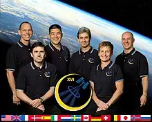 ![]() De izquierda a derecha: Anderson, Malenchenko, Tani, Eyharts, Whitson y Reisman | ||
