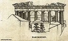 - Abel Blouet, Expedición científica de Morea ordenado por el Gobierno francés; Arquitectura, esculturas, inscripciones y vistas del Peloponeso, las Cícladas y el Ática [ archivo ] (1831) de MM. Abel Boulet, Amable Ravoisié, Achille Poirot, Félix Trézel y Frédéric de Gournay, Firmin Didot, París. , volumen 1, pág. 61.