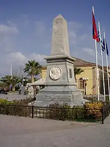 - Monumento en obelisco diseñado en París y construido en Atenas en el taller de esculturas de mármol de Ioannis Chaldoupis en 1903 (en la página web del municipio de Nafplio).