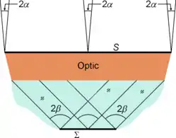 mostrando que la extensión de la luz refractada en dS se conserva. El mismo resultado también es válido para el caso de una reflexión en una superficie dS, en cuyo caso nΣ = nS y θΣ =θS.