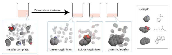La extracción ácido-base es un procedimiento que utiliza extracciones líquido-líquido secuenciales para purificar los ácidos y las bases de mezclas basándose en sus propiedades químicas. [1]