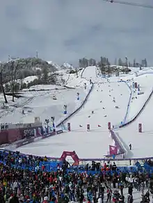 Vista de una pista de esquí del Extreme Park Roza Jútor durante las olimpiadas de invierno de 2014.