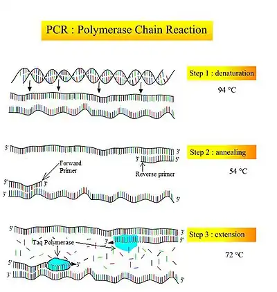 En la PCR se utilizan incubaciones a temperaturas altas y se ha de usar una enzima, ADN polimerasa, que se obtenía de organismos no termófilos, por lo que, después de conseguir cada copia se tenía que añadir una nueva enzima. Actualmente se usa enzima procedente de organismos termófilos, como la Taq polimerasa procedente del Thermus aquaticus, o la Pfu polimerasa, aislada del hipertermófilo Pyrococcus furiosus.