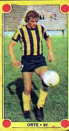 ![]() Félix Orte en Rosario Central, club con el que fue campeón en 1980. | ||
