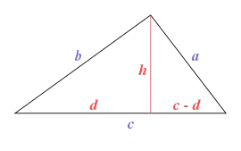 Sustituyendo b 2 por d 2 + h 2 y a 2 por (c − d) 2 + h 2, por teorema de Pitágoras, entonces simplificando se obtiene cd según se requería.