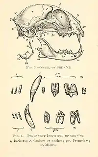 El último premolar maxilar y el primer molar mandibular, por tratarse el gato de un carnívoro, son llamados carnasiales. | |||||