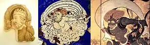 También el dios griego del viento Boreas se convirtió en el dios Wardo en el arte greco-budista, a continuación, una deidad del viento en China (frescos de la cuenca del Tarim), y finalmente el dios del viento japonés Fūjin.