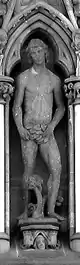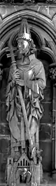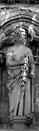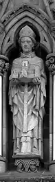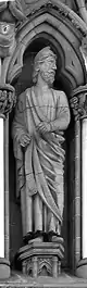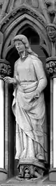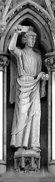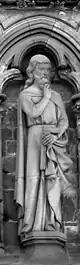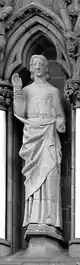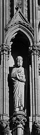 ![]() Disposición escultórica de la fachada occidental.1.Patriarca Abraham, 2.Profeta Samuel, 3.Profeta Isaías, 4.Profeta Ezequiel, 5.Profeta Jonás, 6.Rey David, 7.Rey Josafat, 8.Rey Ezequías, 9.Juan el Bautista, 10.Moisés, 11.Rey Josías, 12.Rey Azarías, 13.Rey Salomón, 14.Profeta Zacarías, 15.Profeta Daniel, 16.Profeta Jeremías, 17.Profeta Elías, 18.Patriarca Jacob, 19.Obispo Øystein, 20.San Hallvard, 21.Santa Sunniva, 22.San Olaf, 23.Caridad, 24.Esperanza, 25.Fe, 26.Profeta Isaías, 27.Arcángel Gabriel, 28.Virgen María, 29.Ángel, 30.Adán, 31.Eva, 32.Verdad, 33.Compasión, 34.Paz, 35.Justicia, 36.San Torlak, 37.San Magnus, 38.Obispo Erlendur, 39.Olaf Tryggvason, 40. Obispo Sigfrido, 41.San Clemente, 42.San Felipe, 43.Santo Tomás, 44.San Bartolomé, 45.San Andrés, 46.San Juan, 47.San Pedro, 48.Crucifixión (María, Jesús y Juan), 49.San Pablo, 50.Santiago, 51.San Simón, 52.San Mateo, 53.Santiago el Menor, 54.San Judas Tadeo, 55.San Nicasio, 56.San Dionisio, 57.San Francisco de Asís. |