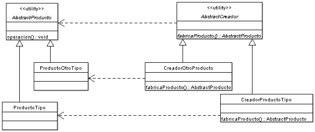 Las clases principales en este patrón son el creador y el producto. El creador necesita crear instancias de productos, pero los tipos concretos de cada producto no deben estar reflejadas en el propio creador, sino que las posibles subclases del creador deben poder especificar los tipos concretos, subclases, de los productos para utilizar.