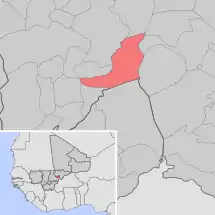 Se encuentra ubicada en el centro del país, cerca de la confluencia de los ríos Bani y Níger, a poca distancia al norte de la frontera con Burkina Faso.
