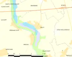 Falvy es una población y comuna francesa, en la región de Picardía, departamento de Somme, en el distrito de Péronne y cantón de Nesle.