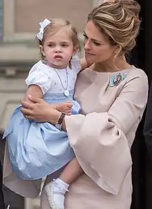 ![]() Princesa Leonor | ![]() | Princesa de Suecia y duquesa de Gotland, nacida el 20 de febrero de 2014 en Nueva York, Estados Unidos. Es la novena en la línea de sucesión al trono sueco. Primogénita de la princesa Magdalena y Christopher O'Neill.[8] | 10 años |