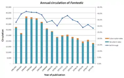 - Las cifras de circulación se publicaron desde 1962 hasta 1979, pero no para 1980 dado que Fantastic ya no existía en 1981 como para publicar datos. Además, la información de 1979 es prácticamente incorrecta toda vez que es un duplicado exacto de 1978, por lo que tampoco existen datos de circulación disponibles para 1979.[18]