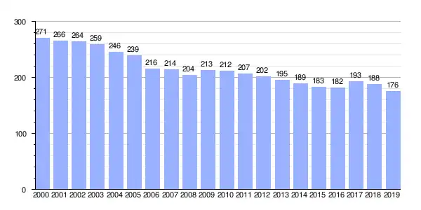 | Gráfica de evolución demográfica de Fao entre 2000 y 2019 |