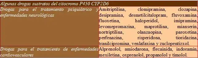 Representan una superfamilia de enzimas metabolizadoras de drogas que se encuentran en el hígado y metabolizan más medicamentos que ninguna otra familia de enzimas. Un miembro de esta familia, el citocromo P4502D6 (CYP2D6) es probablemente el polimorfismo genético mejor caracterizado entre las enzimas citocromo, y representa la primera enzima metabolizadora de drogas humana en ser clonada y caracterizada a nivel molecular. Es al principal catalizador en la biotrasnsformación de un gran número de agentes terpéuticos, entre los que se encuentran drogas utilizadas en el tratamiento de enfermedades psiquiátricas, neurológicas y cardiovasculares. En la actualidad, más de 75 alelos para CYP2D6 han sido descubiertos.