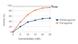 Algunos fármacos son capaces de alcanzar el efecto máximo sin ocupar todos los receptores. Esto se debe a la presencia de receptores de reserva. Así, los receptores pueden permanecer activados una vez que termina la acción del fármaco, generando un grado de activación de receptores constitutivo. Por otra parte, puede ser que las vías de amplificación permitan que la activación de pocos receptores produzca respuestas de mayor magnitud. "[3]