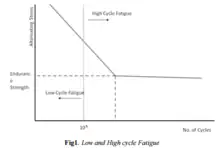 La fatiga de bajo número de ciclos (LCF) tiene dos características fundamentales: deformación plástica en cada ciclo; y fenómeno de ciclo bajo, en el que los materiales tienen una resistencia finita para este tipo de carga. El término ciclo se refiere a aplicaciones repetidas de la tensión que conducen a una eventual fatiga y fallo; ciclo bajo se refiere a un largo período entre aplicaciones.