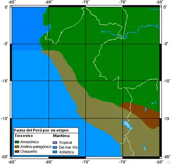 La fauna peruana forma parte de la gran biodiversidad que posee el país, tan diversa como su geografía y su clima.