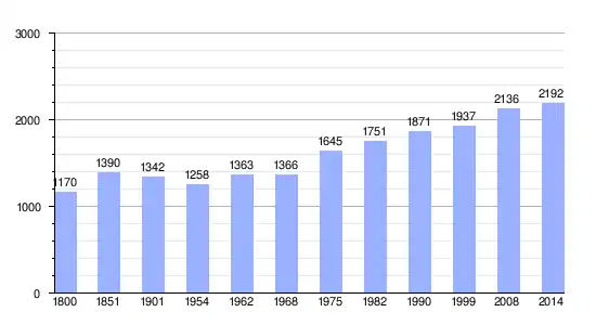 Los datos demográficos contemplados en este gráfico de la comuna de Fauville-en-Caux[4] se han cogido de 1800 a 1999 de la página francesa EHESS/Cassini, y los demás datos de la página del INSEE.[5]