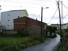 - Inexistencia de remates y acabados exteriores: Las edificaciones carecen de revestimiento, enlucido o enfoscado, quedando el ladrillo hueco o el bloque de hormigón sin pigmento o tratado a la vista. El periodista y financiero Marcelino Fernández Mallo identificó en abril de 2006, en el tramo de la carretera Ribadeo a Baamonde, hasta 206 construcciones de bloque de hormigón y 152 de ladrillo en las condiciones descritas anteriormente.[6] En un análisis del año 2005 realizado en el tramo Meira-Villalba calculó que el 50% de las construcciones eran de ladrillo hueco sin recubrir.[7]