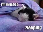 - Lolcat — Es una colección de imágenes macro mostrando a gatos en expresiones y posiciones humanas con frases mal escritas.[65] Las primeras versiones de lolcats aparecieron en 4chan, generalmente los sábados. A partir de entonces han denominado "Caturday" a dicho día (combinación entre las expresiones inglesas "cat" y "saturday") como un día para publicar fotos de gatos.[66] Puede considerarse una variante que se destacó entre las imágenes, y se diversificó, el conocido "Longcat". Originalmente se trató de la foto de un gato blanco sostenido de manera tal que acentuaba su longitud. Tomando eso como premisa luego se extendió por la red con ironías y alusiones a cosas de grandes dimensiones o alargadas.