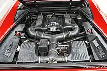 Técnicamente fue un gigantesco paso adelante de los 320 CV (316 HP; 235 kW) de su antecesor a 380 CV (375 HP; 279 kW) en el nuevo y su sustituto solamente le superaba por 20 CV (14,7 kW) con sus 400 CV (395 HP; 294 kW). Más importante que la cifra de potencia, es que fue el modelo que introdujo definitivamente los muy altos regímenes en Ferrari. Su potencia máxima se encontraba pasadas las 8000 rpm y rozaba las 9000 rpm de régimen máximo (línea roja), con lo que lograba una potencia específica altísima de 108,7 CV/litro. Este aumento de potencia se consiguió con solamente 0.1 litro extra de cilindrada, con un diámetro x carrera de 85 x 77 mm (3,35 x 3,03 pulgadas).[2]
