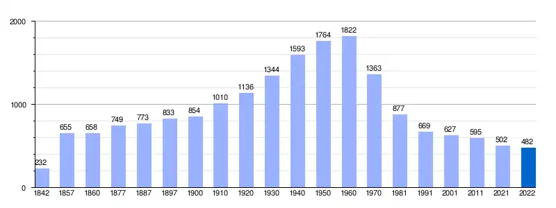 Población de derecho (1842-1991, excepto 1857 y 1860 que es población de hecho) o población residente (2001-2021) según los Censos de Población desde 1842. |