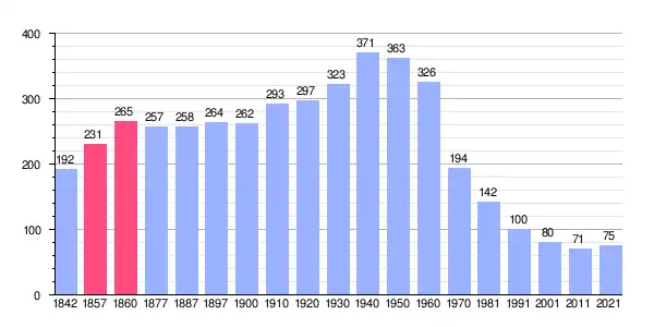 | Gráfica de evolución demográfica de Ferreruela de Huerva[4][5] entre 1842 y 2021 |