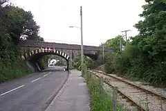 ![]() Paso por debajo del viaducto de Par y de la Línea Principal de Cornualles, cerca de la entrada al puerto de Par | ||