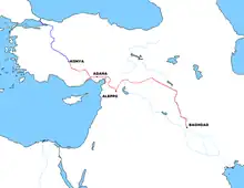 El Imperio Otomano decidió situar la línea fuera del alcance de los cañones de la armada británica. Así, se evitó la vía costera de Alejandreta a Alepo. La línea tuvo que cruzar las montañas Amanus, lo que requirió costosos trabajos de ingeniería, incluyendo un túnel de ocho km entre Ayran y Fevzipaşa.[15]