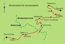 - al sur del valle Schottwiener, donde hoy yace la ruta de la Vía rápida de Semmering S6.