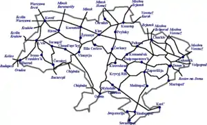 Más tarde, en la década de 1860, el ferrocarril de Lviv se extendió hacia Chernivtsi (en ese momento Czernowitz era la capital del Ducado de Bucovina) e Iași (en ese momento Jassy estaba en el Reino de Rumanía). También en 1865 en la Ucrania rusa se empezó a construir el ferrocarril desde Odesa hacia Balta.