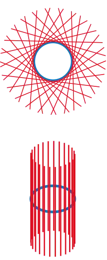 donde TpM denota el espacio tangente a M en el punto p. Así, un elemento de TM se puede pensar como un par ordenado (p, v), donde p es un punto de M y v es un vector tangente a M en el punto p. Existe una proyección:
