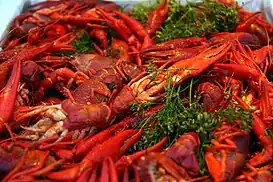 ![]() Cangrejo cocinado tradicionalmente con eneldo. | ||