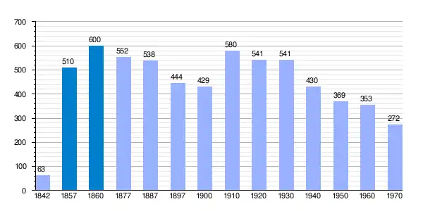 | Gráfica de evolución demográfica de Figols de Orgañá[2] entre 1842 y 1970 |