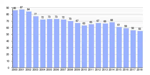 | Gráfica de evolución demográfica de Figueroa entre 2000 y 2018 |