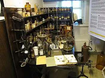 La palabra química derivó de chymia, un término acuñado por Andreas Libavius para describir las prácticas de laboratorio en contraposición a la alquimia esotérica.[60] Libavius escribiría Alchemia (1597), uno de los primeros libros de química, el cual es descrito como el primer libro de texto práctico en la historia de la química.[61]