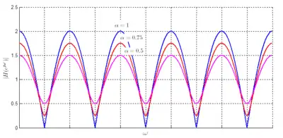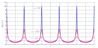 Los gráficos a la derecha muestran la respuesta en magnitud para varios valores de , demostrando esta periodicidad. Algunas propiedades importantes: