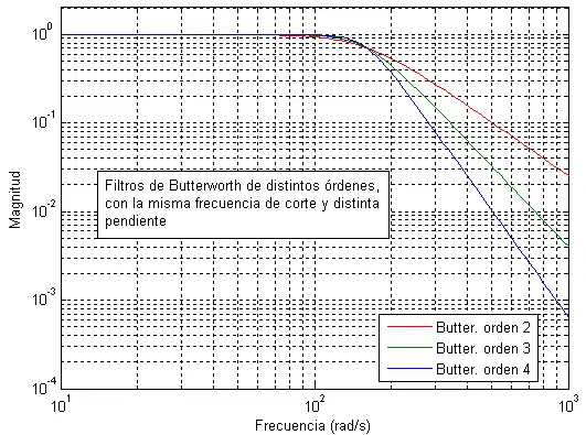 El filtro de Butterworth es el único filtro que mantiene su forma para órdenes mayores (sólo con una pendiente mayor a partir de la frecuencia de corte).