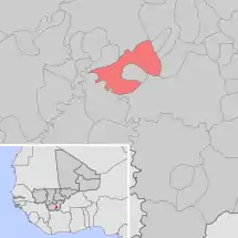 Se encuentra ubicada al suroeste del país, cerca del río Níger, al sureste de la capital nacional, Bamako, y cerca de la frontera con Burkina Faso y Costa de Marfil.