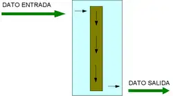 Esquema de funcionamiento de una cola FIFO.