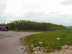 - Fitoestabilización: simplemente reduce la movilidad de los contaminantes. La técnica más utilizada es el uso de plantas para reducir la escorrentía superficial y subsuperficial, lo que limita la erosión y reduce la escorrentía hacia el acuífero subterráneo. Esta práctica integra el control de lo que comúnmente se llama control hidráulico, o Fitohidrorregulación.[4] El bombeo hidráulico, (literalmente traducido del inglés) podrá efectuarse cuando las raíces llegan a las aguas subterráneas, eliminando grandes volúmenes de agua y controlando el gradiente hidráulico y la migración lateral de los contaminantes en el acuífero. En resumen, se trata de usar plantas con alta evapotranspiración para reducir el movimiento de contaminantes procedentes de la escorrentía (lateral o profunda). Otra práctica es detener los compuestos contaminantes haciéndolos reaccionar químicamente. Las plantas adsorben los contaminantes del suelo, del agua o del aire, y los retienen a nivel local (de ahí el uso del término «adsorción» en lugar de absorción) y la reducción de su biodisponibilidad. El proceso a veces se puede realizar, amplificándolo y acelerándolo mediante la adición de compuestos orgánicos o minerales, naturales o artificiales. Es un método eficaz para prevenir la dispersión de contaminantes en aguas superficiales o subterráneas.