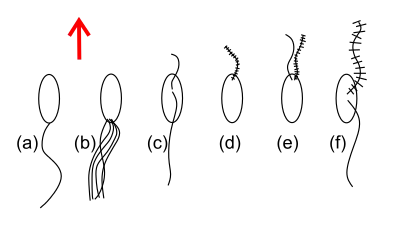 - Anficonto: Flagelos dirigidos en sentidos opuestos.