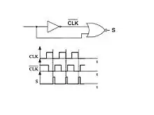 En la siguiente figura se representa un circuito detector de flancos típico, junto con su cronograma. Su funcionamiento es como sigue: