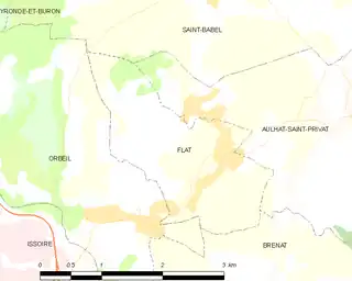 Flat era una comuna francesa situada en el departamento de Puy-de-Dôme, de la región de Auvernia-Ródano-Alpes, que el 1 de enero de 2016 pasó a ser una comuna delegada de la comuna nueva de Aulhat-Flat[3] al fusionarse con la comuna de Aulhat-Saint-Privat.