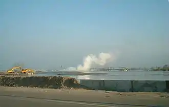 - Sidoarjo mud flow from NASA's Earth Observatory, posted December 10, 2008. This article incorporates public domain text and images from this NASA webpage.